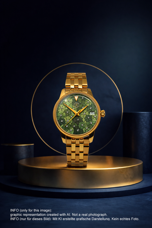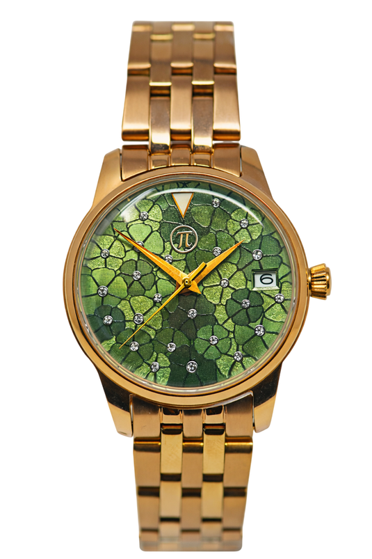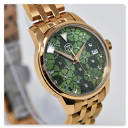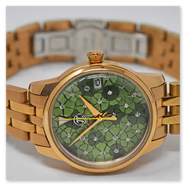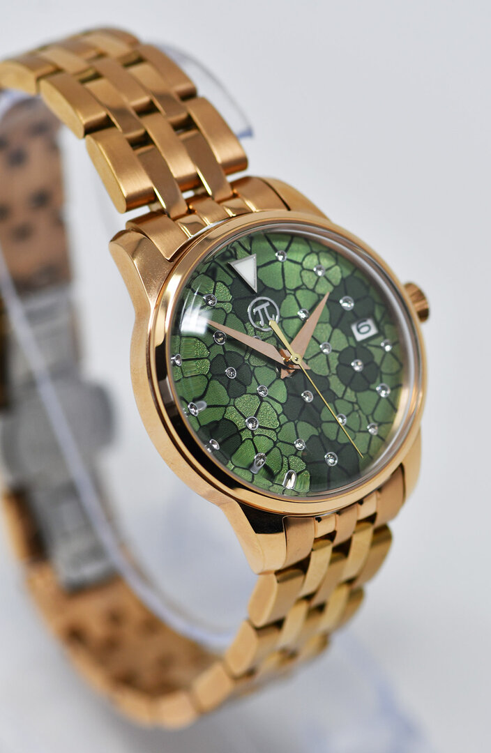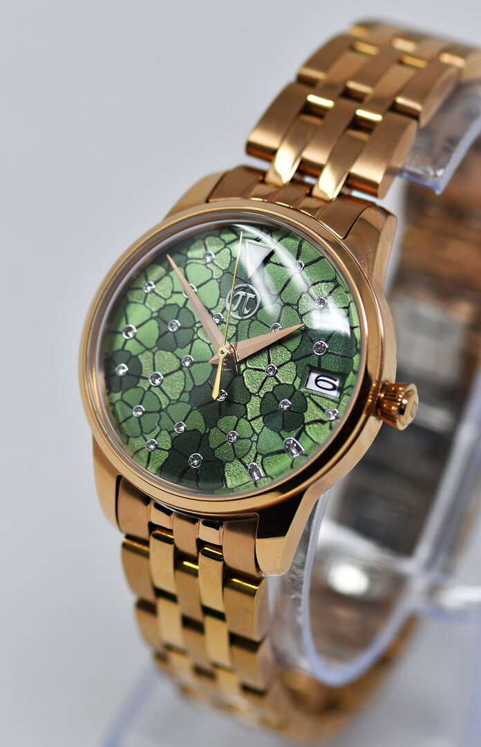 Seiko automatic ladies' watch. Very elegant ladies' watch with green dial and floral pattern. Window revealing the gold-decorated rotor.
