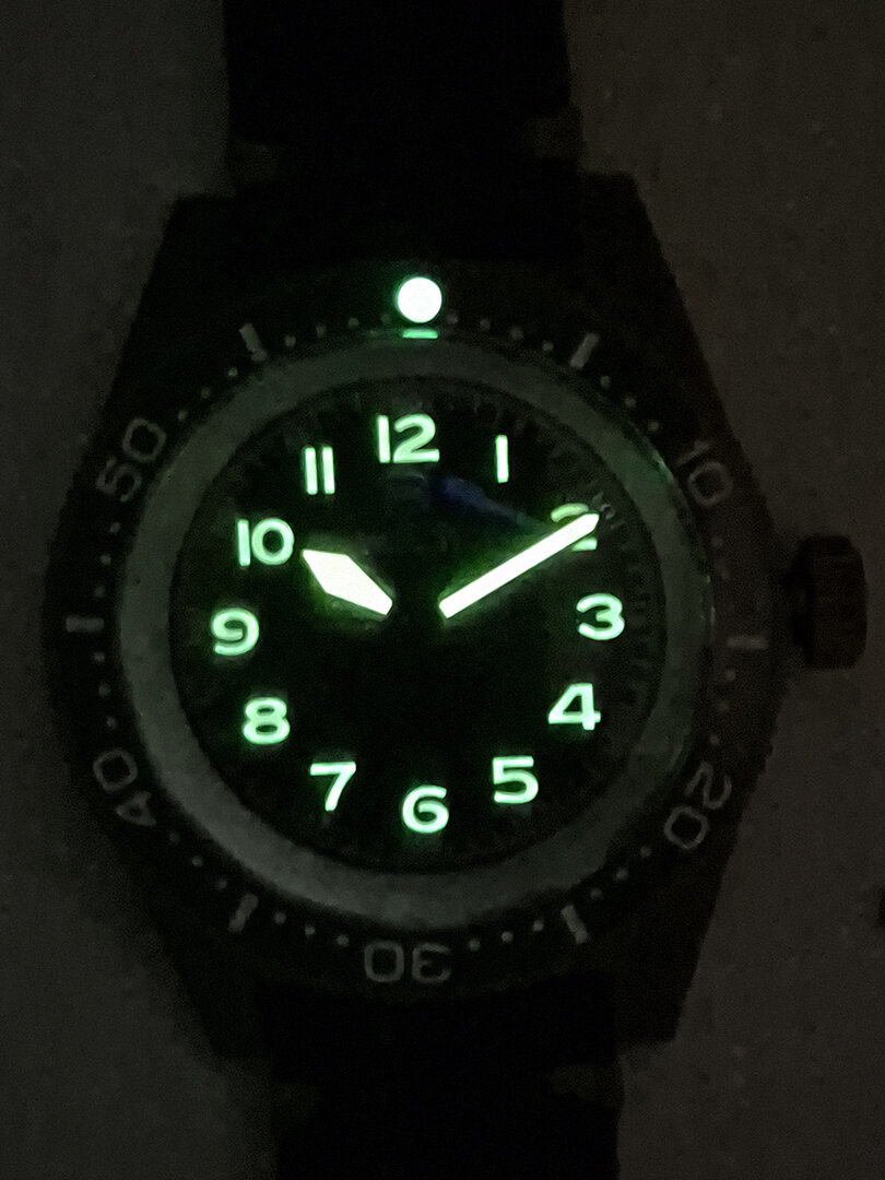 - LUME: hands, indices & 12 o'clock point on the bezel