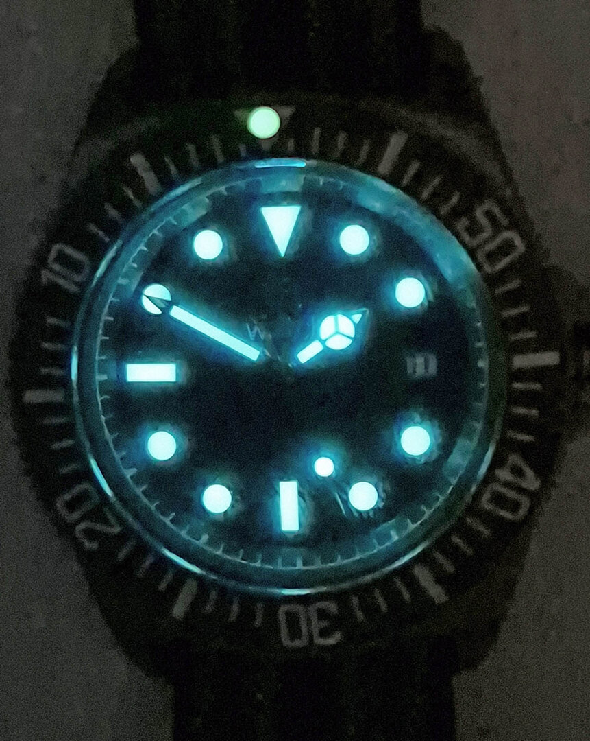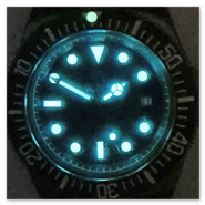 - LUME: hands, indices & 12 o'clock point on the bezel