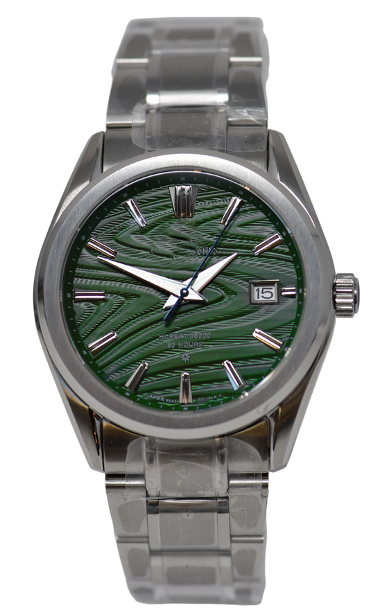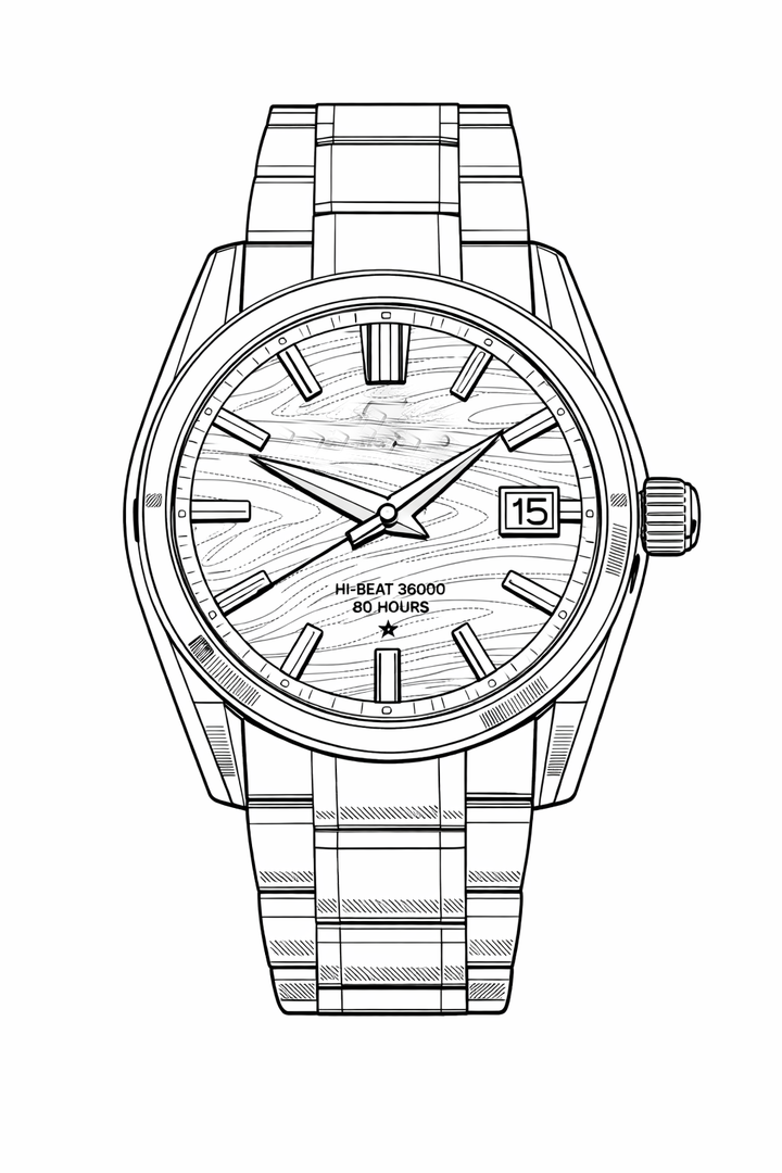Homage based on a dial and similar hands from the Seiko GS. With a Seiko NH35A movement, the accuracy could be set to almost 0 seconds per day in all positions. This watch is equipped with the best NH movement I have had so far.