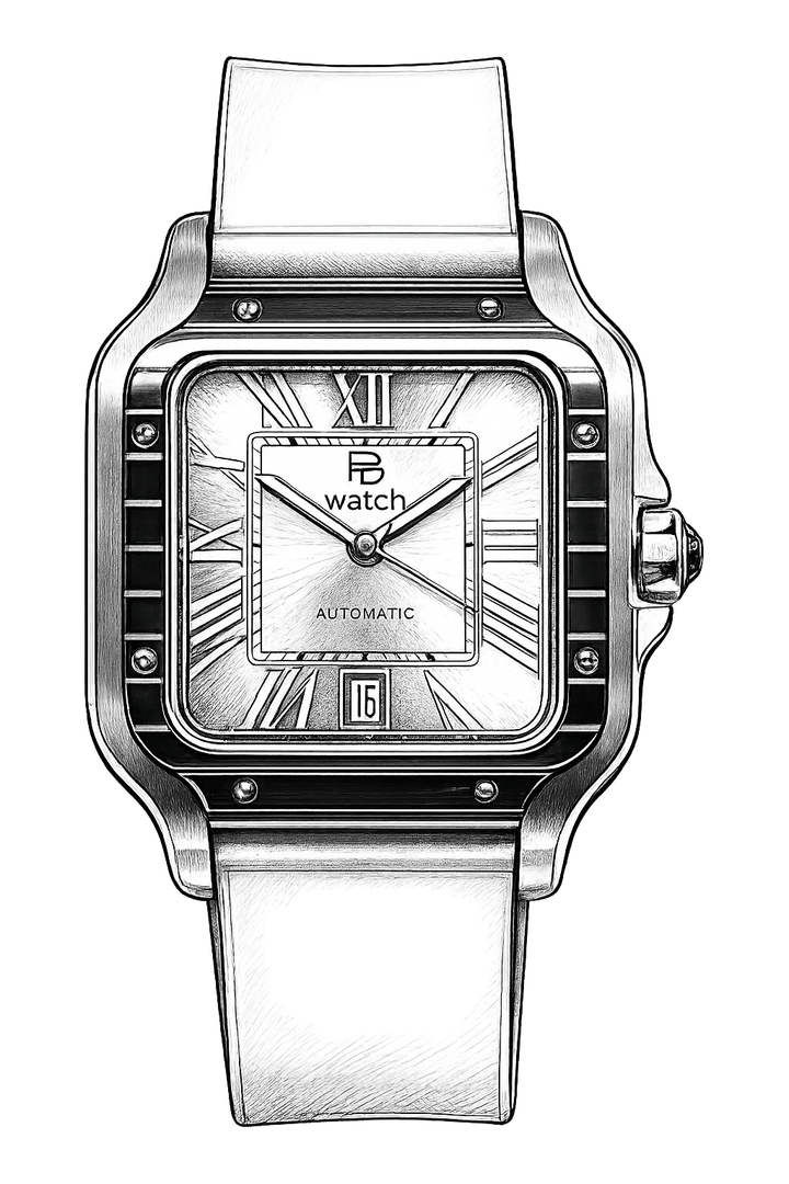 In 1904, the renowned Brazilian aviator Alberto Santos-Dumont encountered an issue. He needed a way to tell the time during flights without taking his hands off the controls. He turned to his friend, the Parisian jeweller Louis Cartier, for help. Cartier came up with the idea of a wristwatch specially designed for aviators. While most men at the time used pocket watches, Louis Cartier designed an elegant, square timepiece that could be worn on the wrist. It was both elegant and practical. This watch became known as the Santos, named after the pilot who inspired its creation. One of the world's first men's wristwatches, it marked the beginning of a new era in watchmaking. Over the years, the Santos de Cartier has evolved, but its bold design, visible screws, and refined style have made it a timeless icon.
