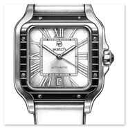 Watch with styles from "Santos de Cartier). About 120 years ago, such a watch was one of the first truly unisex watches.